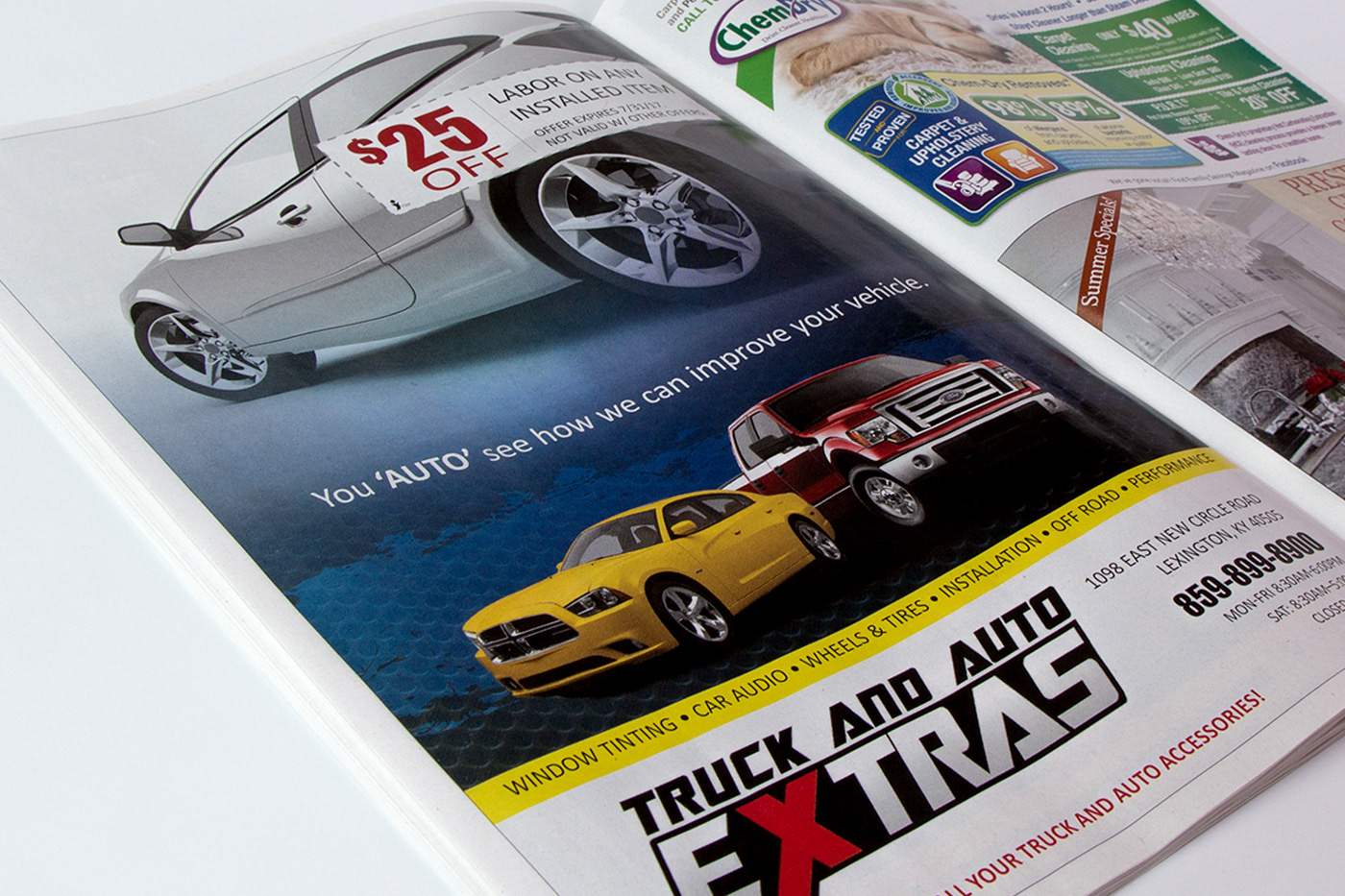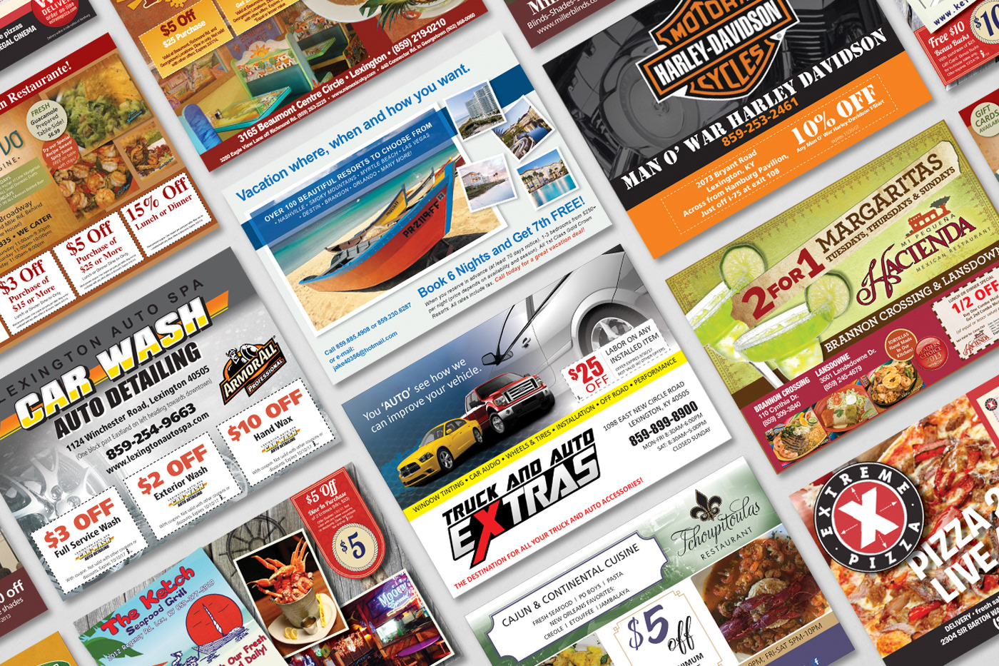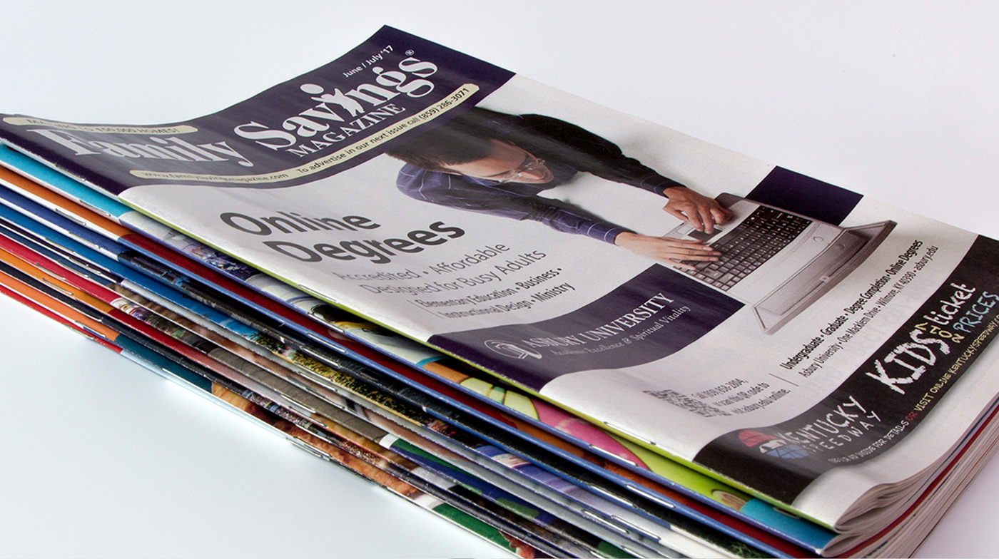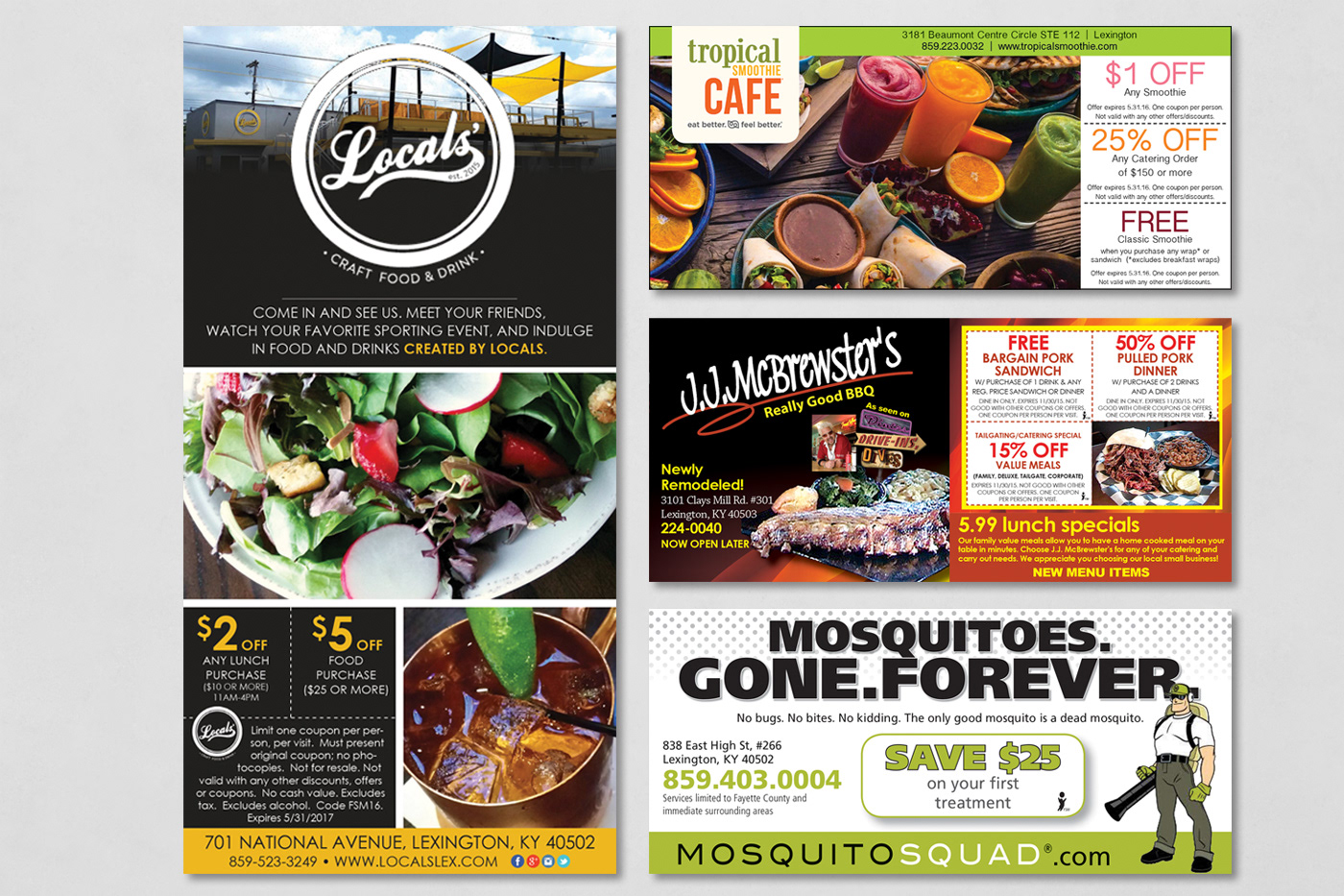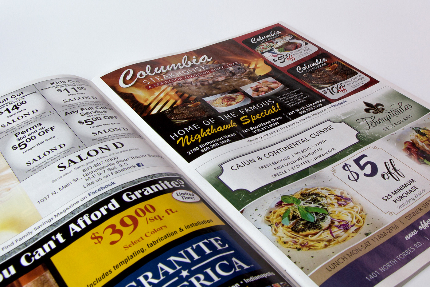 ® is a coupon-style magazine direct-mailed to central Kentucky households. Design work includes: advertising layout/design, publication layout/prep. for press and