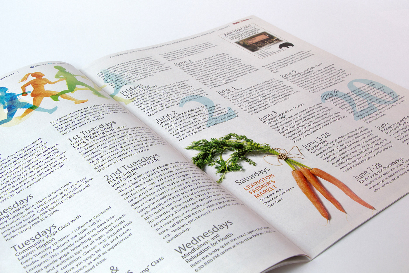 – a free full-color, glossy publication for the health-conscious in central Kentucky. Distributed to over 75,000 readers in 19 counties.